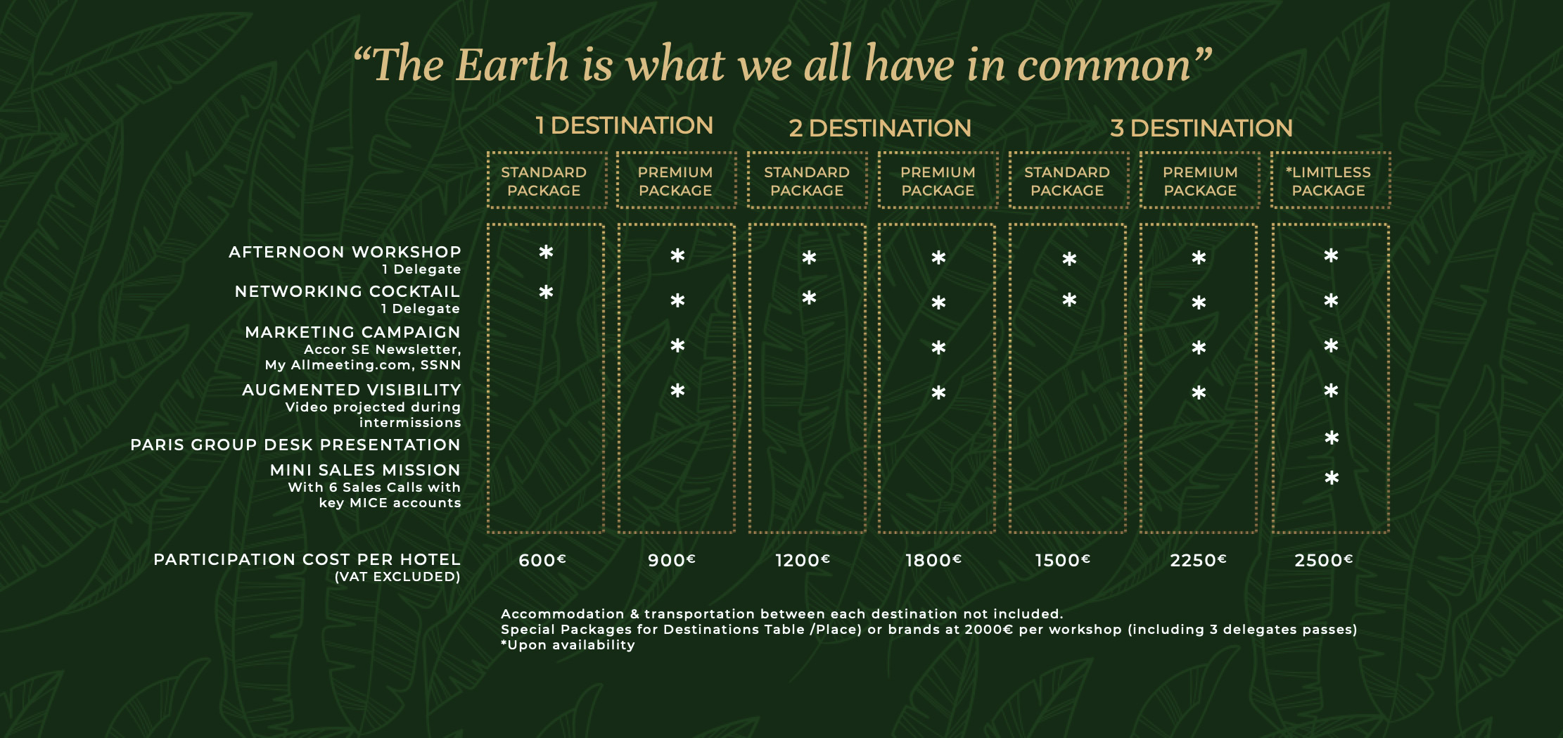 Participating hotels can attend from 1 to multiple workshops according to the package options hereafter.
